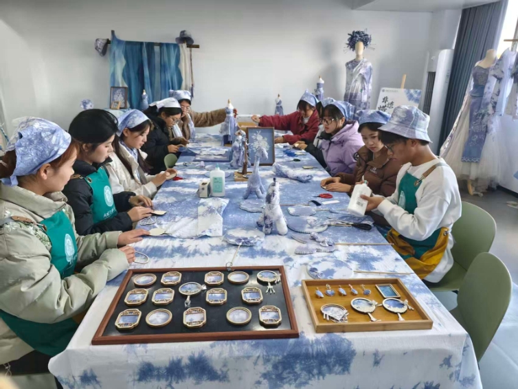 這樣的場景在校園里并非個例。除了禮射工坊,洛陽科技職業(yè)學(xué)院還有扎染工坊,讓藍(lán)白相間的花紋在學(xué)生們手中悄然綻放。這些生動畫面,是該校“非遺在校園”活動的生動寫照。