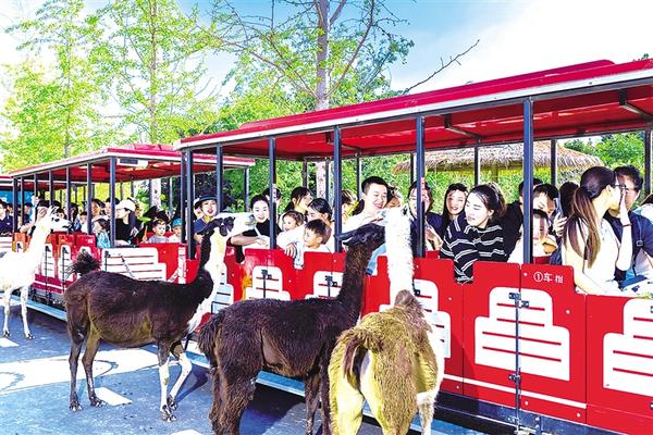 “小火車(chē)的輪子轉(zhuǎn)啊轉(zhuǎn),轉(zhuǎn)啊轉(zhuǎn)……”近日,在周口野生動(dòng)物世界,隨著觀光小火車(chē)緩緩啟動(dòng),來(lái)自安徽亳州研學(xué)旅行團(tuán)里的孩子們開(kāi)心地唱起歌來(lái)。一路上,他們乘坐小火車(chē)穿行景區(qū),與老虎、黑熊、獅子等猛獸“擦肩而過(guò)”,近距離接觸溫順的羊駝、梅花鹿等食草動(dòng)物,沉浸在與野生動(dòng)物相遇的驚喜之中?!疤袅?,像是進(jìn)入了‘瘋狂動(dòng)物城’!”一名孩子興奮地大喊。