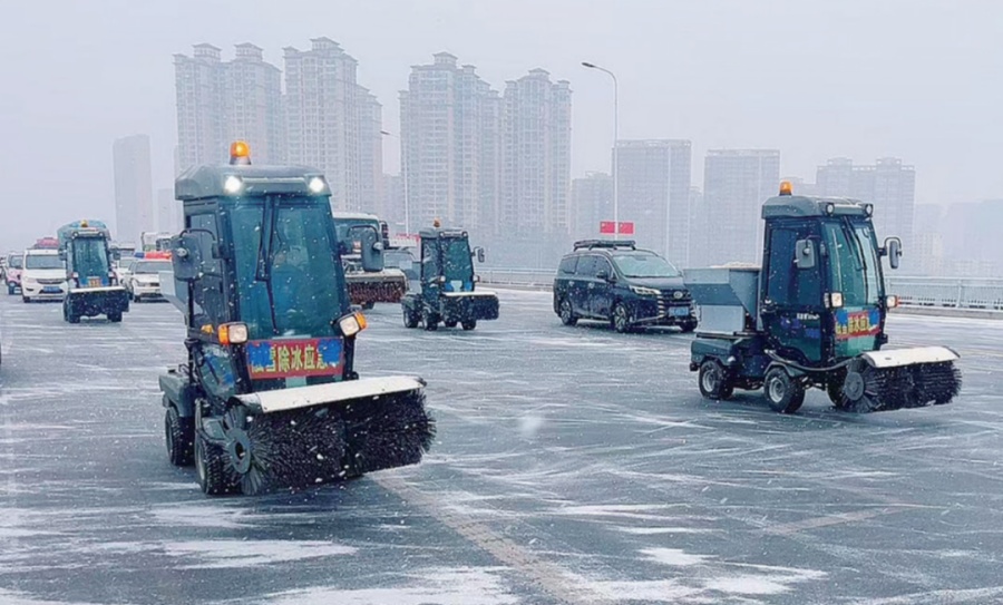漫天大雪紛紛揚(yáng)揚(yáng),中心城區(qū)3500余名環(huán)衛(wèi)工人奮戰(zhàn)一線(xiàn)。在北京大道、獨(dú)山大道等主次干道上,雪滾車(chē)、鏟雪車(chē)、融雪劑撒布車(chē)來(lái)回穿梭,轟鳴聲中,積雪被快速清除;在光武大橋、南陽(yáng)大橋等易結(jié)冰橋梁上,“機(jī)械預(yù)撒+人工補(bǔ)撒”,重點(diǎn)加大橋面、匝道融雪除冰力度;在學(xué)校、醫(yī)院、公交站點(diǎn)及交通樞紐周邊,人工清掃組細(xì)致清理人行道與出入口積雪,為群眾開(kāi)辟安全通道。