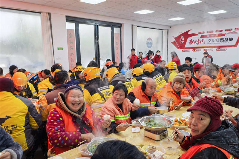 信陽市公益志愿者協(xié)會的志愿者們連續(xù)10年在信陽東站為旅客奉粥,遞去冬日暖意,繪就申城最動人的圖景
